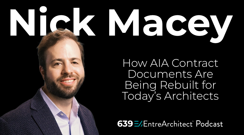 CEO Nick Macey on clarity, risk, and modern contract intelligence for small firms This week on the EntreArchitect Podcast, I sat down with Nick Macey, CEO of AIA Contract Documents, for a timely and important conversation about risk, clarity, and the future of contracts in architectural practice. If you run a small firm, this episode […]